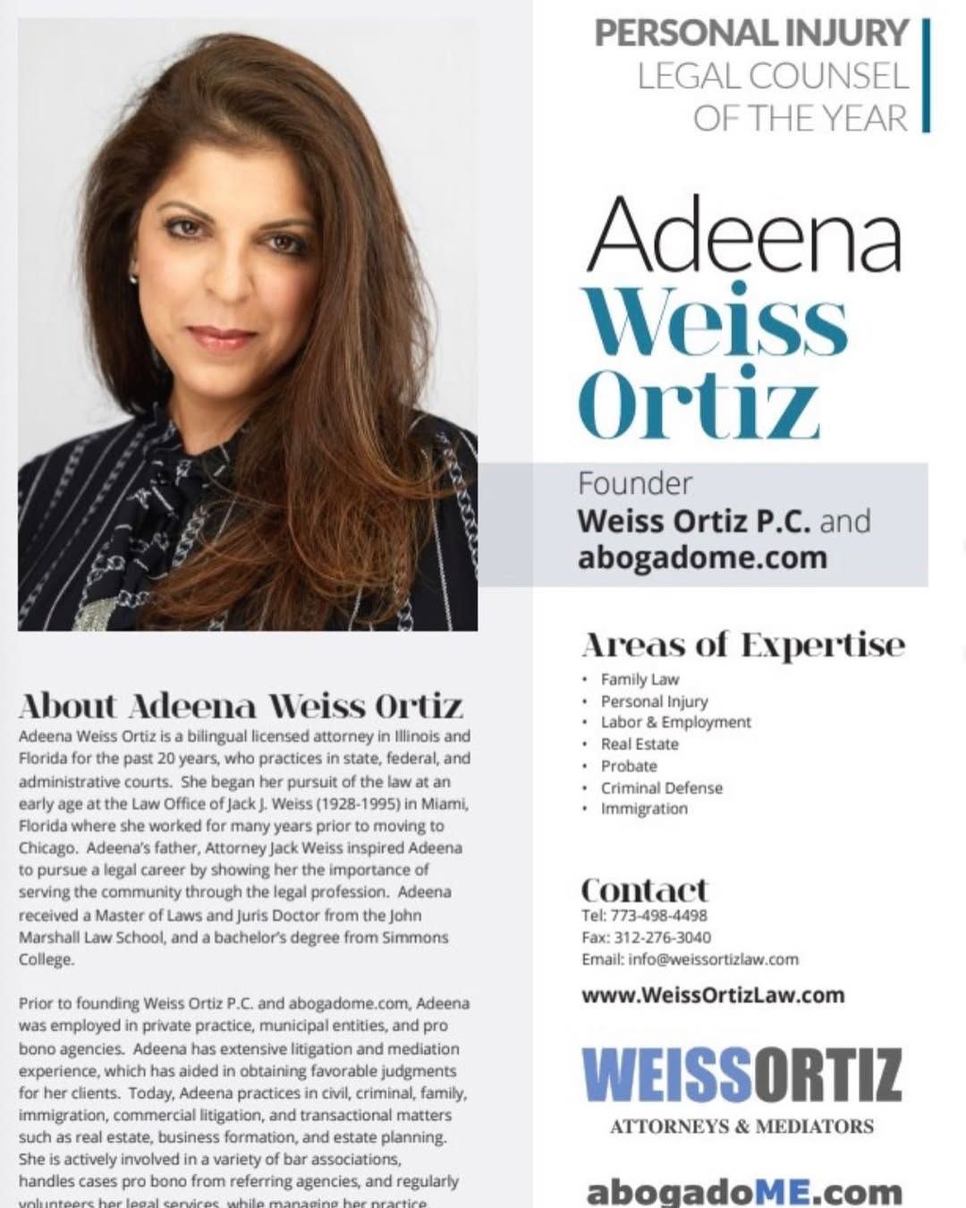 I was injured and had an attorney downtown. They never spoke to me and never told me what was going on in my case. Then, he wanted me to accept a low settlement offer from the insurance. A dear family friend referred me to Attorney Weiss Ortiz. After I met with her, I asked her to represent me. In a very short period, Attorney Ortiz got me 40% more than my prior attorney and reduced all my medical bills. Also, she is very easy speak with and allowed me to stop by her office at any time if I had any questions. She cares and respects her clients, and I would hire again in the future.